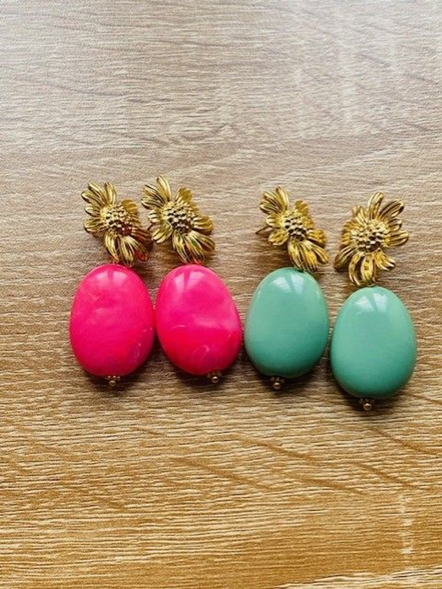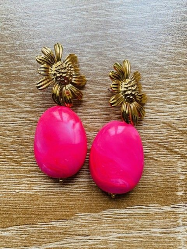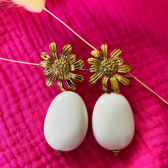 Boucles d'oreilles Femme "Daisy" (grandes) en acier inoxydable dorée et acrylique.