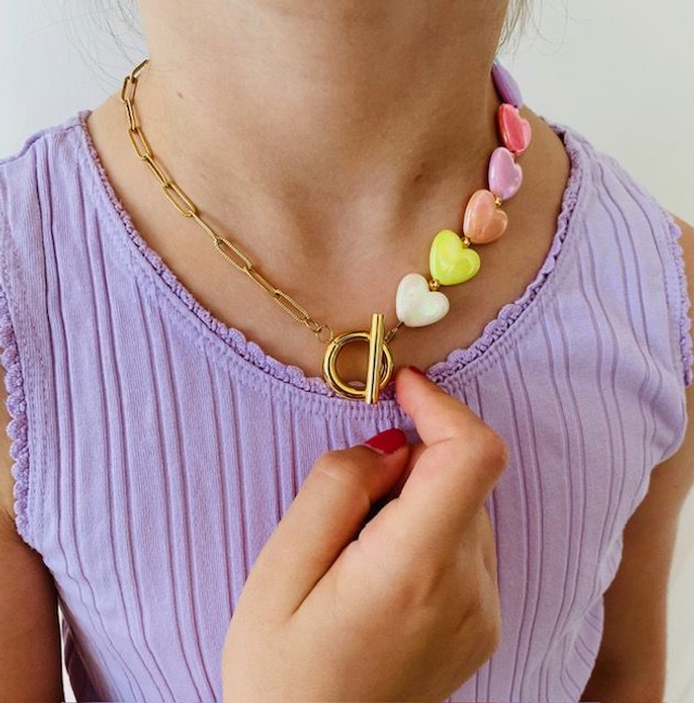 Collier conçu et créé en France, 100% acier inoxydable, perles en acrylique.
