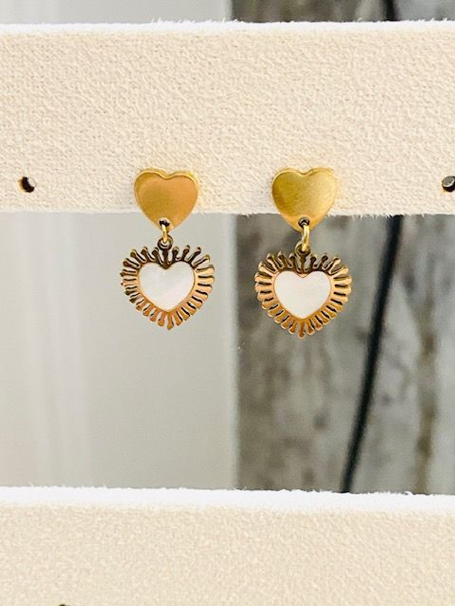 Boucles d'oreilles Fille & Femme 100% acier inoxydable et coeurs en nacre.